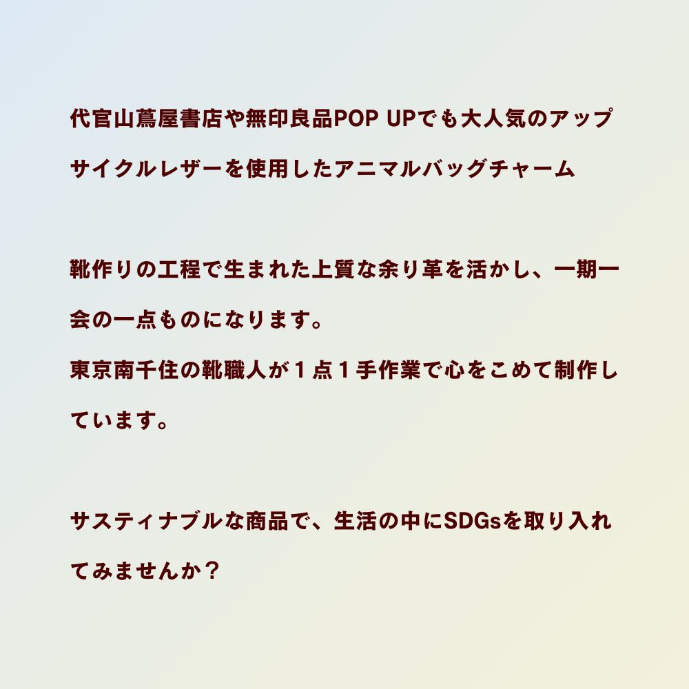 代官山蔦屋書店や無印良品POP UPでも大人気のアップサイクルレザーを使用したアニマルバッグチャーム(ミニチュアダックス)