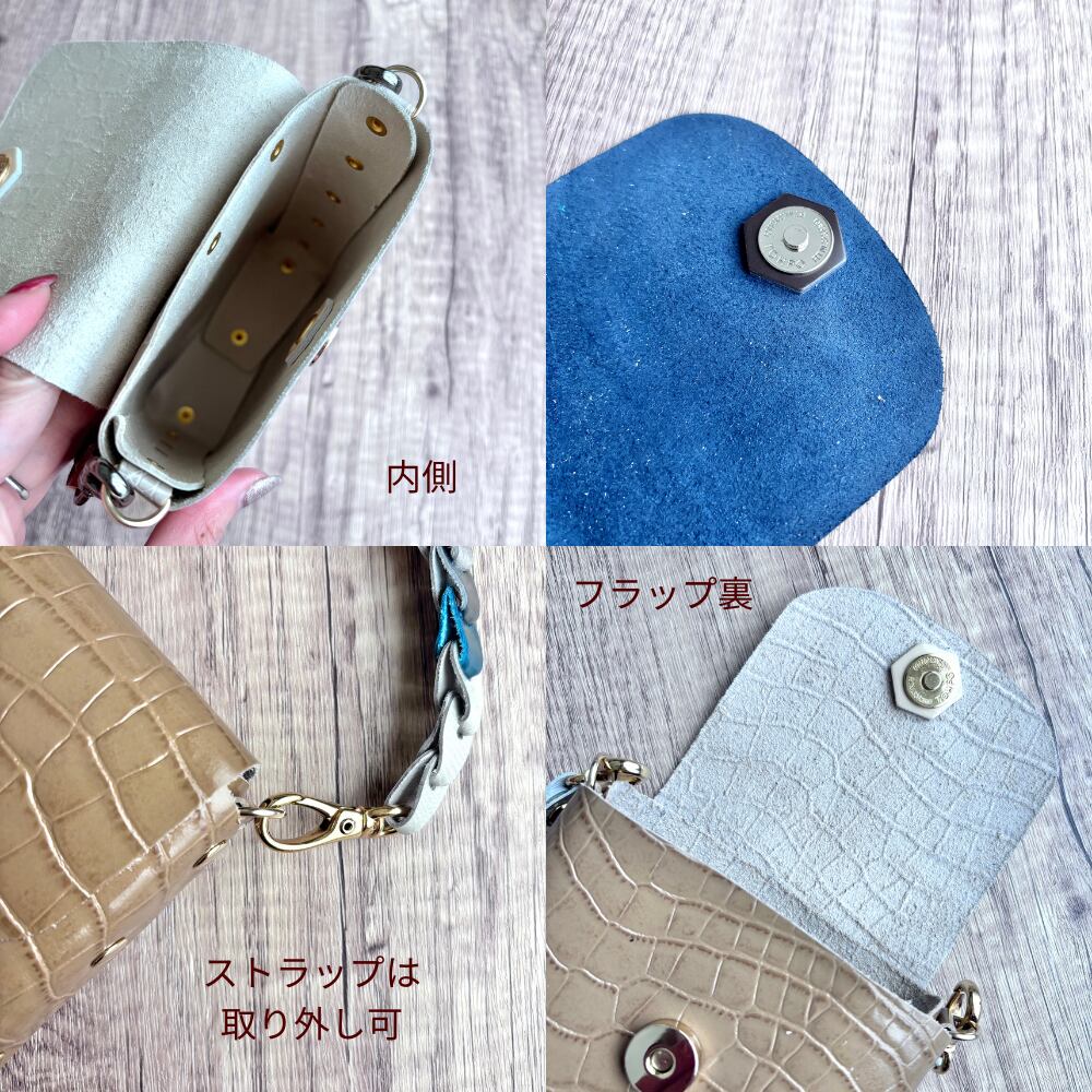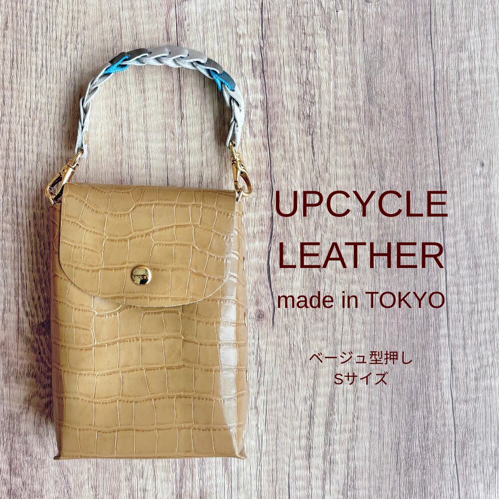 アップサイクルレザー使用!ミニバッグ・ベージュ型押し(Sサイズ)